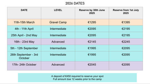 In addition to our regular intermediate and advanced level camps we have also launched our gravel camp for Spring 2026, for those looking to explore Mallorca's hidden gems off road.